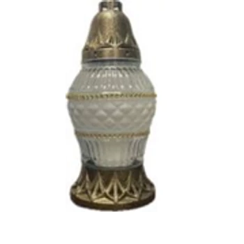 Mécses Z-439 Arany antik műanyag kupakkal, fehér üveg, kristály stassz csíkkal, fehér festéssel (8db/krt)