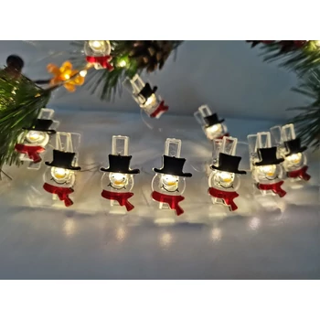 Modee Karácsonyi LED Füzér Dekor Elemes+Csipesz C3015 (10LED/90cm/10cm) Warm-Hóember (48db/krt)