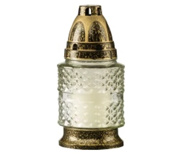 | Üveg mécses, fehér üveg-arany antik kupakkal |