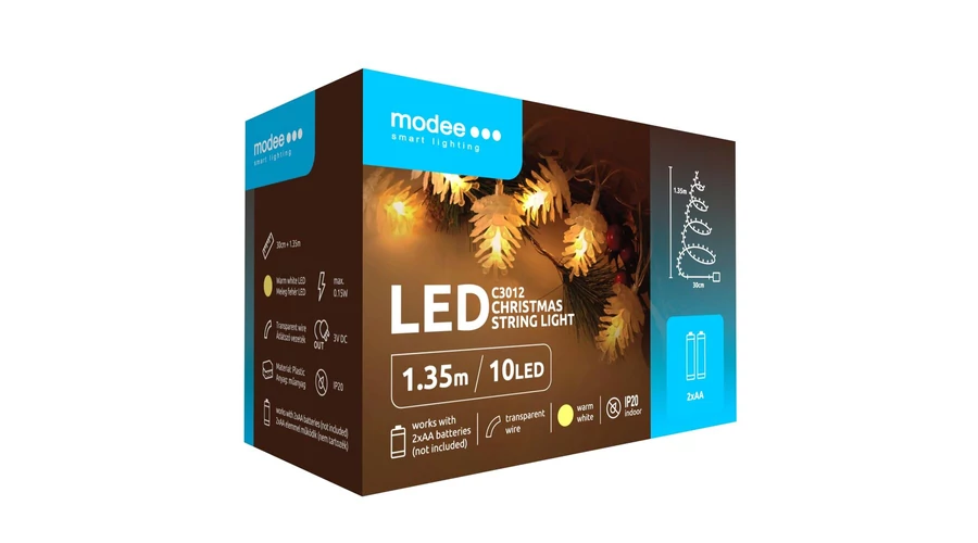 Modee Karácsonyi LED Füzér Dekor Elemes C3012 (10LED/135cm/15cm) Warm-Toboz (db/krt)
