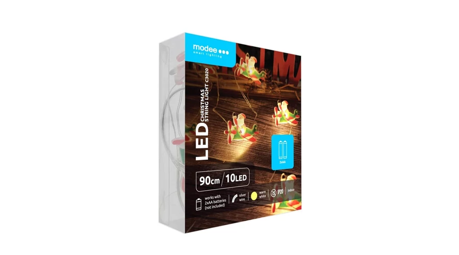 Modee Karácsonyi LED Füzér Dekor Elemes C3020 (10LED/90cm/10cm) Warm-Repülő Mikulás (80db/krt)
